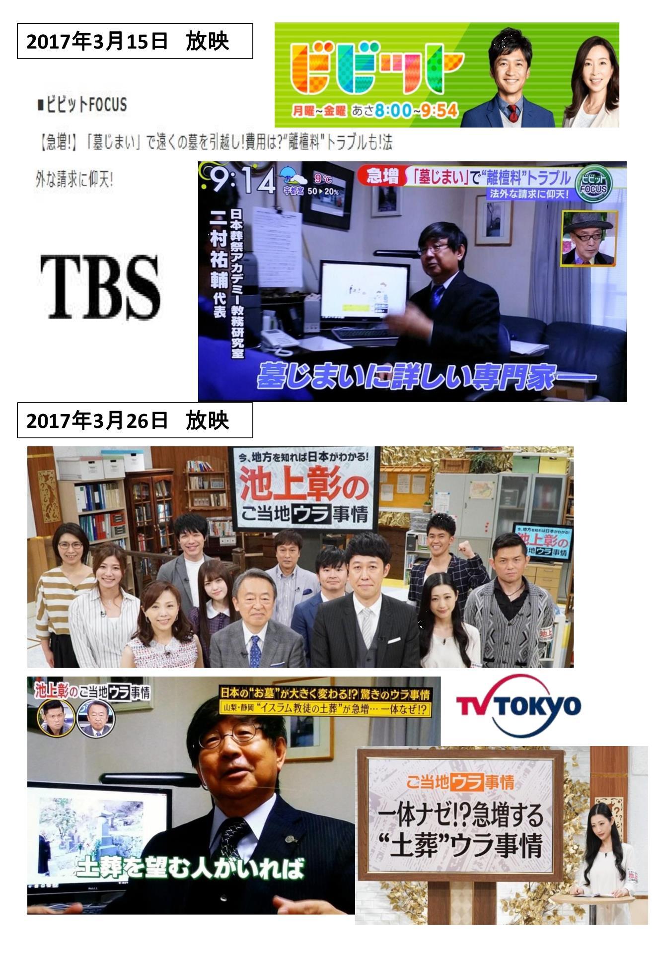 | 最近の出演 | 2017年3月26日 テレビ東京「池上彰のご当地裏事情」 2017年3月15日 TBS「ビビットFOCUS」 2015年~2016年 フジテレビ「ノンストップ」 2回 他多数 2015年~2016年 「日経プラス10」葬祭・お墓特集 3回 他多数 |